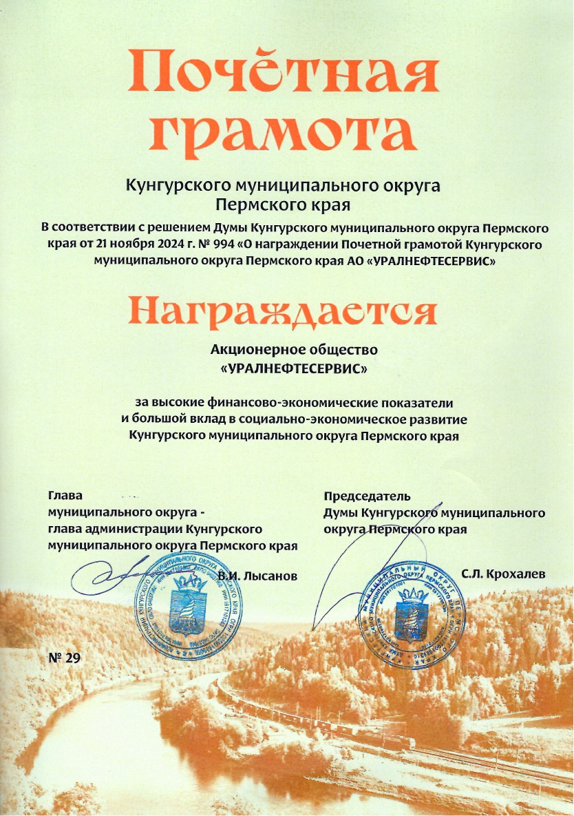 В 2024 году АО «УНС» принимал на Кунгурской земле конкурс профессионального мастерства «Нефтисиада-2024», на который съехались более сотни лучших нефтяников из Москвы, Перми, Ханты-Мансийского округа, Удмуртии, Оренбуржья, Самары, Республики Коми и Тюмени. Команда АО «УНС» провела мероприятие на высоком уровне, продемонстрировав на соревнованиях не только профессиональное мастерство работников предприятия, но и широкое гостеприимство организаторов конкурса.